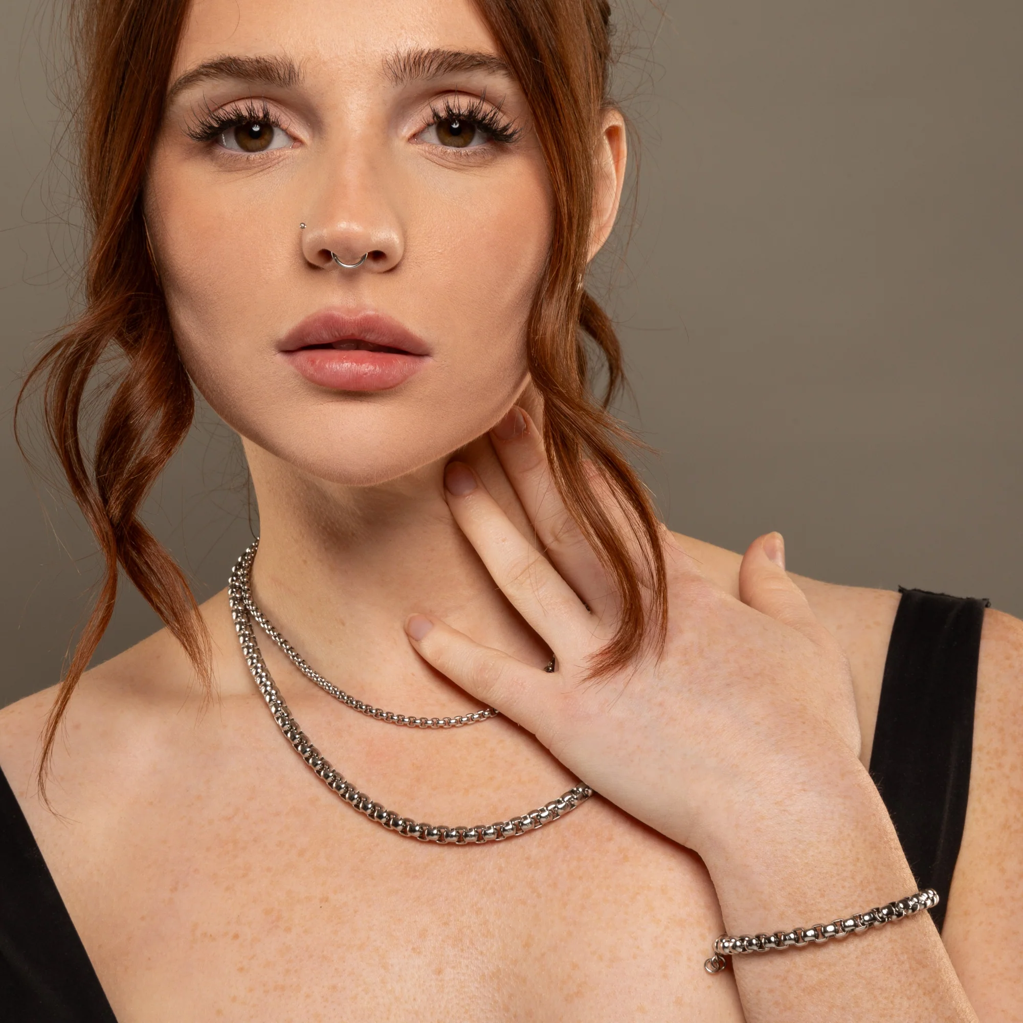 A Classic minimalist stainless steel Round Box Chain necklaceÂ