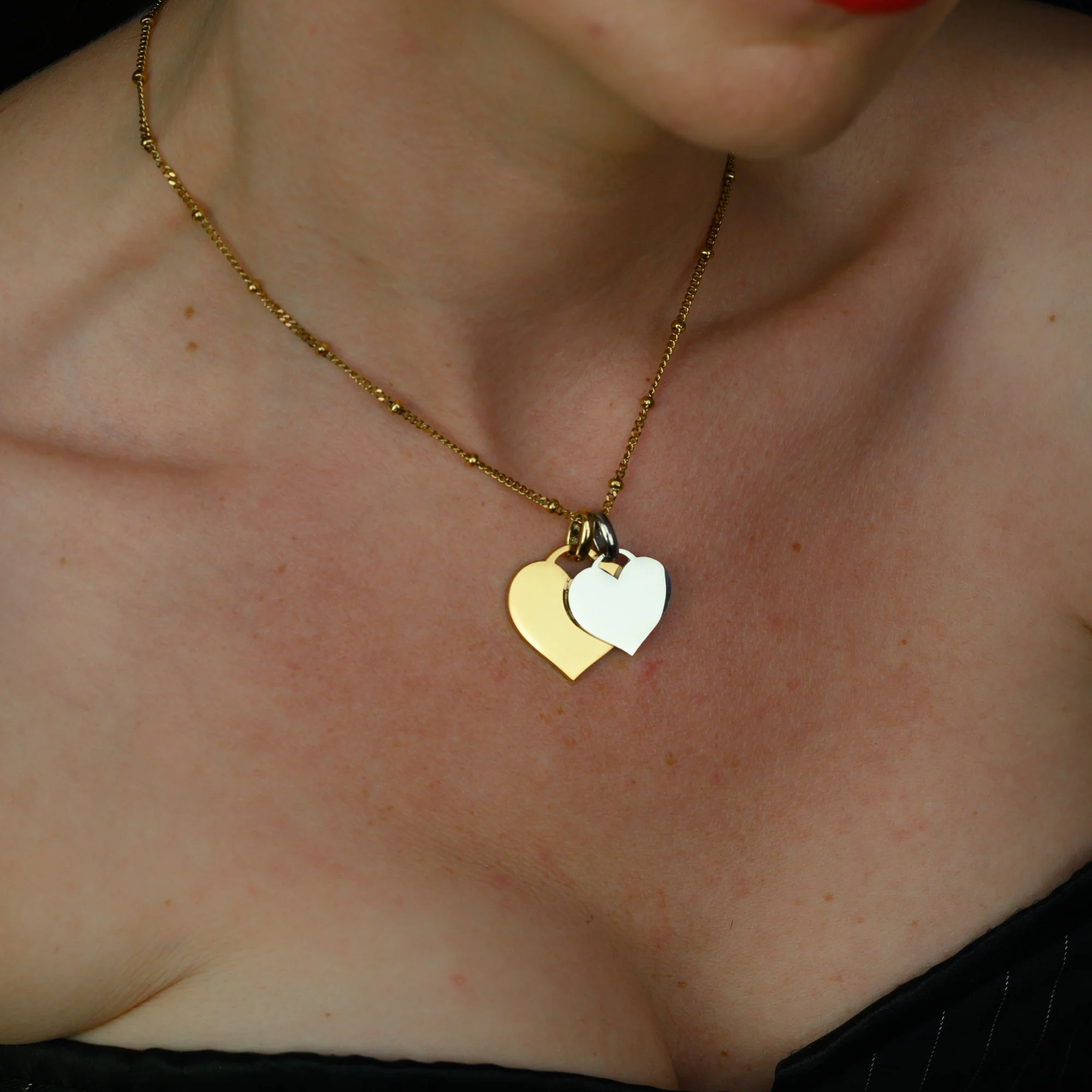 Introducing the Soulbound Double heart pendant necklace, pair your Gold Soulbound Heart pendant with a small heart pendant in Gold or Silver. Personalise both with your own special engraved messages to create the ultimate gift to your loved one or that someone special. Â
